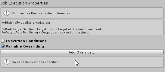 By pressing "Add Override..." you have an option to either include an existing Job variable or create a new one.