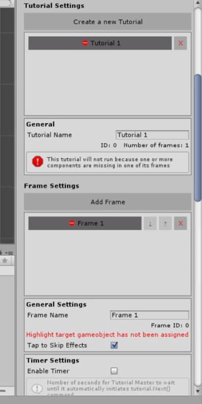 Press “Create a New Tutorial”. Give it a name if you want (e.g. Newbie Tutorial). Then press “Add Frame”. You should now see a lot of options: