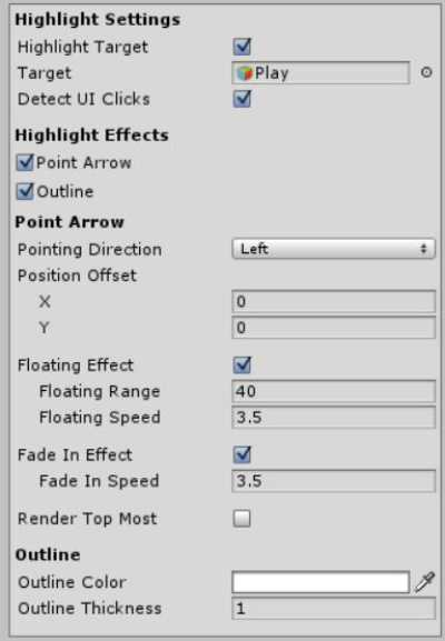 | Target | UI GameObject that you wish to be highlighted |