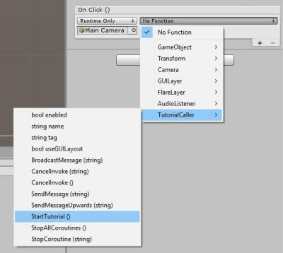 - Create a new script and call it whatever you want it to be (e.g. TutorialCaller). And attach it to a GameObject (e.g. Main Camera)