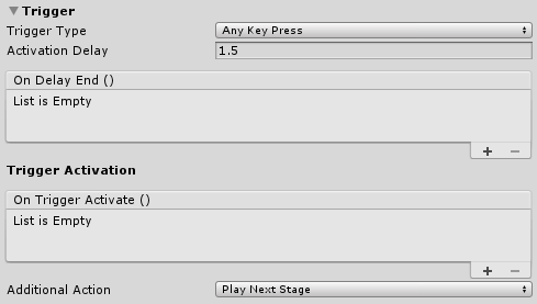 If the Trigger Type is not set to “Timer” or “None”, you can specify the delay before trigger is activated. This is quite useful if you don't want your player spamming the button and skipping the tutorial accidentally without properly reading the instructions for example.